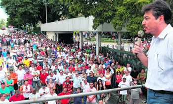 vaiado ao tentar defender Dilma, em um ato com cerca de 20 mil trabalhadores.